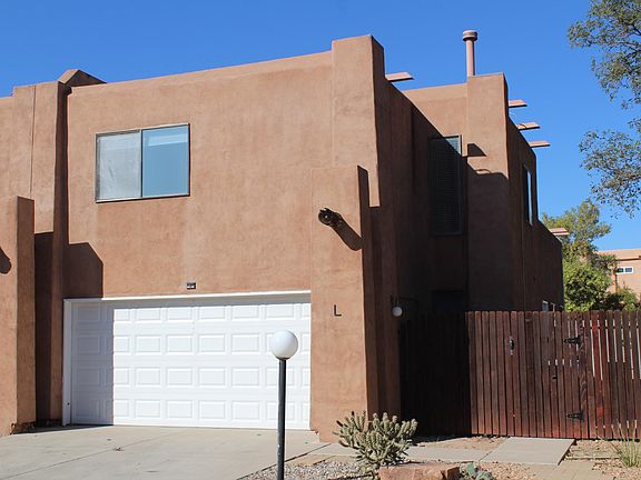 Amazing and unique townhome located in Monkbridge gardens. The home is located at the end of a private road and is in a very quiet and private neighborhood. This 2br 1.5ba home features a 2 car attached garage with washer/dryer hookups, refrigerated air, fireplace, updated appliances, locked mailbox, large backyard, and plenty of storage. Large open living space with a unique round room and staircase that leads to the bedrooms on the second floor. Both bedrooms have independent access to master bathroom. Master bedroom is very large and has a walk in closet and views of the Sandia Mountains. New flooring on entire 2nd story. Centrally located, minutes from I-40/I-25, UNM, downtown, old town, sawmill district, and the Bosque. Owner pays for trash and sewer. Tenant pays for Electric, Water, gas, internet/cable.