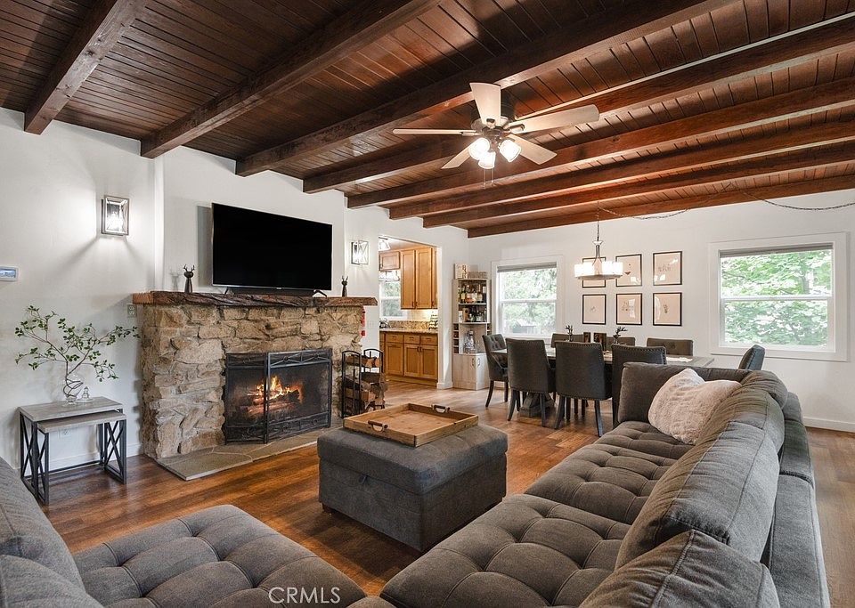 Charming 1927 Cabin in Private Crest Estates Nestled in the highly sought-after and private enclave of Crest Estates in Lake Arrowhead, this timeless 1927 cabin offers the perfect blend of historic charm and modern upgrades. Tucked away in a storybook setting surrounded by towering pines and dogwood trees, this serene retreat is ideal for peaceful vacations or full-time mountain living. Less than a mile away from the village on nearly a 1/2 acre lot. The warm and inviting interior features original hardwood floors and a beautiful stone wood-burning fireplace that anchors the cozy living space. The main level offers a spacious primary suite with its own ensuite bath, a galley-style kitchen, and a convenient laundry space. Go outside onto the large main-level deck to take in the tranquil forest and peekaboo lake views—perfect for entertaining or enjoying quiet mornings. Downstairs, you'll find a generous playroom complete with its own bathroom and direct access to a second expansive deck, offering additional space to relax or host guests. There's parking for 3-4 vehicles, and the low association fee makes ownership easy. Bonus: the pool table is included! Experience the magic of Crest Estates—a hidden gem where nature, privacy, and history come together.