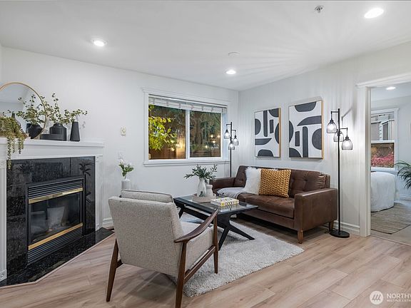 Discover refined urban living in the heart of Capitol Hill. This light-filled corner unit offers a rare combination of privacy, comfort, and style. Inside, a cozy gas fireplace anchors the open living space, while two generously sized bedrooms provide the perfect retreat for rest & relaxation. Modern kitchen features bar seating, sleek cabinetry, and stainless steel appliances. Step outside to your expansive private patio with lush yard space, perfect for morning coffee, gardening, or evening gatherings. Enjoy the convenience of secured garage parking, plus effortless access to I-5, renowned restaurants, boutique shops, parks, and the Capitol Hill lightrail station. Every detail invites you to embrace a lifestyle of sophistication and ease.