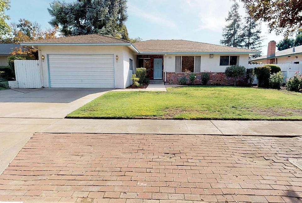 Charming 3 bedroom/2 bath home. Large living room with brick fireplace. Wood cabinets in kitchen. Kitchen and bathroom have tile counters. Covered patio off of living room. Large back yard and 2 car garage