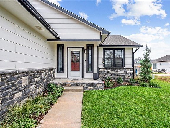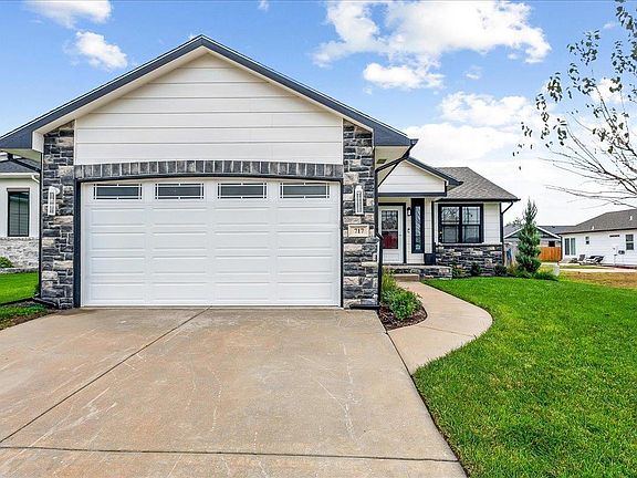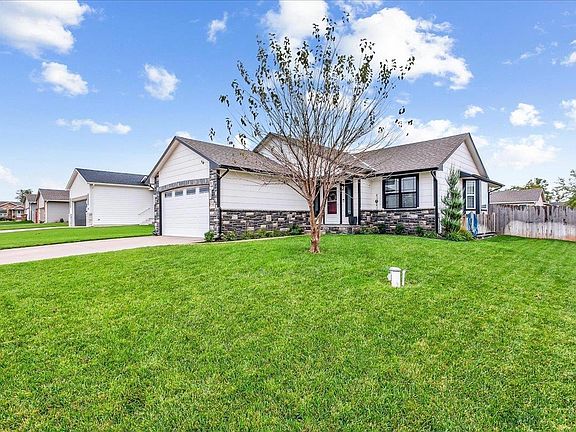 Welcome to this spacious 3-bedroom, 3-bathroom home with an abundance of curb appeal in Andover. Built in 2023 This home is IMACULENT and the SPEACIALS ARE PAID OFF. This home is in the family friendly Andover community of Reflection Lakes. The main level provides comfortable living space, with Luxury Vinal flooring throughout all living areas and Vaulted ceilings in the Living Room, Dining Room, and Kitchen. Quart’s countertops in the kitchen, wet bar and all three bathrooms. Carpet in the bedrooms and tile in all the bathrooms. The Primary suite in on the main level and has beautiful bathroom with jetted tub and separate shower. The finished lower level offers a large family room complete with a cozy gas fireplace. Just off the family room, you'll find a bonus game room with a convenient wet bar, perfect for entertaining. This desirable community in Andover offers you an opportunity to enjoy a quiet suburban atmosphere with highly rated Andover school district. The home is equipped with a reverse osmosis system, water softener, beautiful custom lighting, sprinkler system with irrigation well and an 8x10 storage building in the meticulously maintained back yard! This home is absolutely MOVE-IN Ready. You will not need to update anything at all. Discover the best of suburban living in this beautiful 3-bedroom home, perfectly situated in the family-friendly community of Andover. Only minutes away from Dillons and YMCA in Andover, this residence offers the ideal space for both relaxing and entertaining. The lower level is a true standout. Located in a thriving area known for its excellent schools and strong community events, with easy access to US-400 and Andover Rd, this home provides a serene convenient escape to all that Andover has to offer.