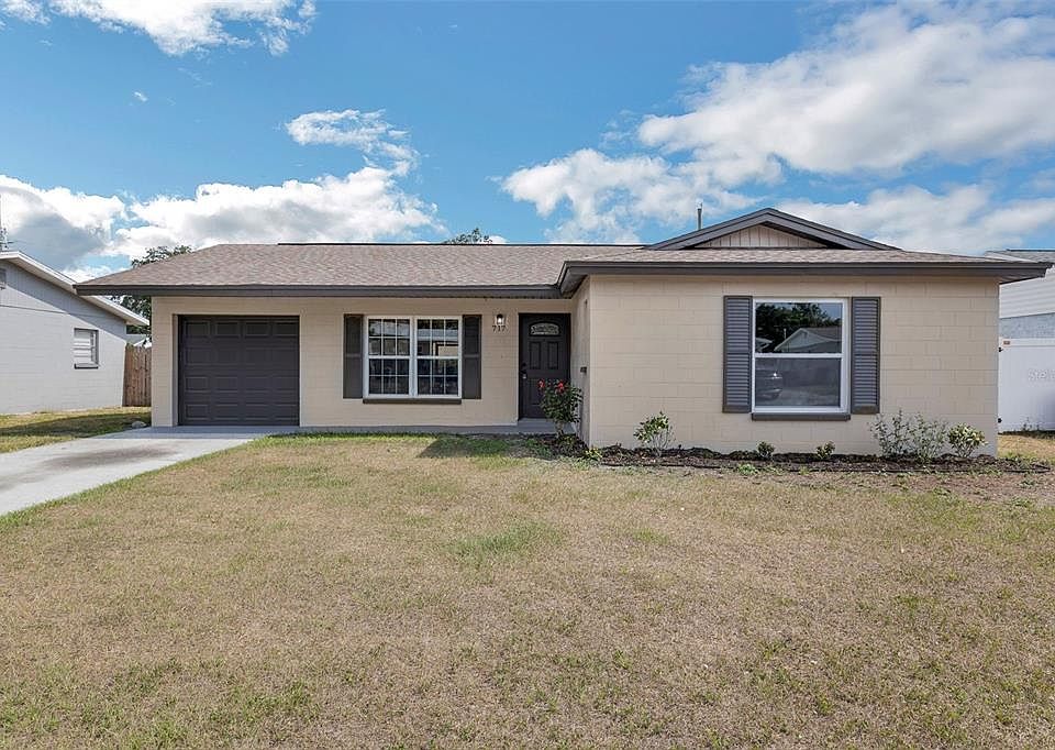 Lovely 3 bedroom, 1.5 bathroom home with a 1-car garage and large screen-enclosed lanai in the back. HUGE fenced-in backyard. Home has a perfect, easy layout and multiple upgrades. New interior paint, new lights, ceiling fans and other fixtures, and an all new kitchen! Kitchen features NEW cabinets, backsplash, a NEW kitchen sink and faucet, NEW quartz countertops and NEW stainless steel appliances. Garage and lanai flooring has been refinished. Move in stress free with the newer 2020 Roof, 2017 HVAC and plumbing repiped in 2020! Schedule a showing now!