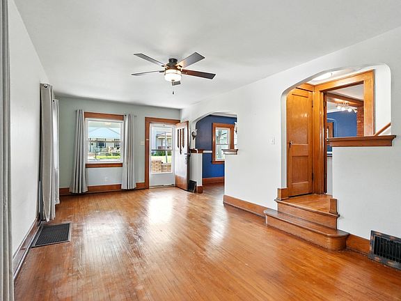 Buyer and Seller could not agree on terms so This well-maintained home is back on the market. It is nestled on a quiet street and welcomes you with beautiful landscaping and a charming open front porch. Inside, you'll find stunning hardwood floors and solid wood doors throughout, a spacious living and dining area, and eye-catching exposed brick that adds a modern touch and character. Both living room and dining displays the charm with stained glass windows. The kitchen features a tile backsplash and convenient access to the basement and rear entry. A centrally located half bath adds functionality to the main level. Upstairs offers all bedrooms, some with built in cabinetry, and a full bath. The fenced backyard includes a detached garage, and the clean basement offers laundry space and excellent potential. Don’t miss this unique blend of character, comfort, and space! Check out our video tour below.