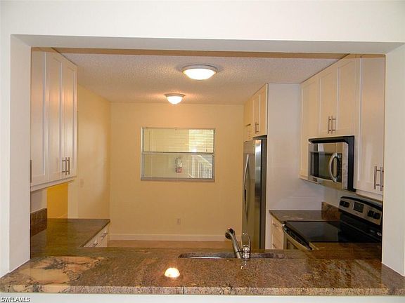 Lowest Priced!! Welcome to this refreshing retreat in the heart of Naples! This charming property boasts a prime location near shopping, dining, and all the essentials, ensuring convenience at your fingertips. Enjoy the tranquility of the beautifully landscaped courtyard area, perfect for relaxing or entertaining. With two pools onsite, you'll have endless options for rest and relaxation. Freshly painted and caulked doors and windows lend a pristine feel to this lovely space, while the proximity to the Naples beach adds a touch of serenity to the surroundings. Come and experience the best of Naples living in this inviting oasis! Unit has Natural Light and is First Floor End Unit with 3 Bedrooms, 2 Baths, and 1450 sq.ft., under air! 2024 New Water Heater and A/C Unit, 42' White Wood Cabinets with Soft Closing Drawers, Granite Counter-tops, Stainless Steel Appliances, Porcelain Tile Floors throughout, Bathrooms Updated, New Washer & Dryer with large laundry room, Fans with Lights throughout unit, Breakfast Bar Area, Eat In Kitchen, Dining Room, Large Living Room, with peaceful and tranquil landscape views. Lanai and unit are tiled throughout, NO Carpet!! This Newcastle Community is only minutes from downtown Naples 5th Avenue, the sandy white Beaches, Int 75 Access. Located within walking distance to The Berkshire Lakes Commons Plaza featuring Publix Grocery Store, Walgreens, Banks, Gas Station and Lots of other options for you. Schedule your showing of this upscale Condo Unit Today!