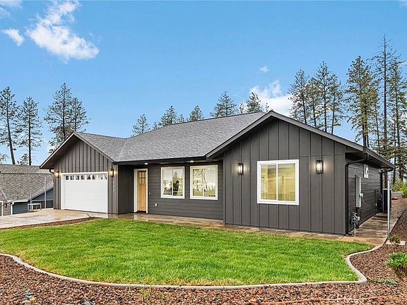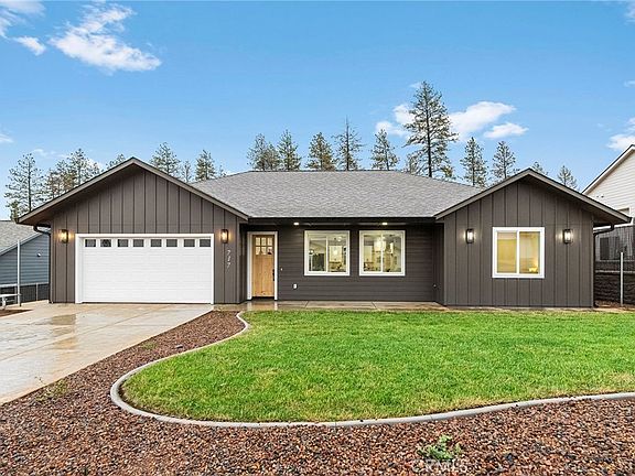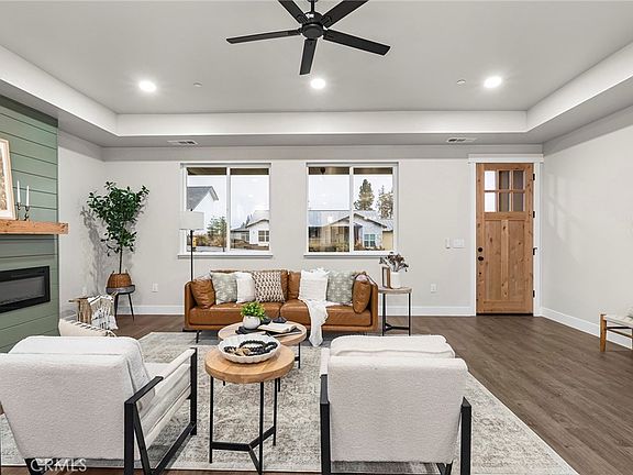 Modern design meets small-town charm here! This beautiful 3-bed, 2-bath home sits on one of Paradise’s most desirable, newly built streets—lined with gorgeous stick-built homes. Gone are the days of wondering what might be built next door; Madrone Way offers peace of mind and a true sense of community. If this home isn’t the one, come see what else is available on Madrone! Step inside and you’ll immediately be greeted by 9’ ceilings throughout, with 10’ tray ceilings in both the living room and the primary suite. The finishes set this home apart, with the green fireplace serving as an instant showstopper. The open-concept layout is perfect for entertaining, featuring a spacious kitchen with an L-shaped island and plenty of room for barstools—ideal for gatherings and everyday living. This split floor plan places two bedrooms, a full bath, and the laundry room on one side, while the primary suite enjoys its own private retreat on the other. The primary bathroom feels like a spa getaway, showcasing a striking wet room with a tile shower and soaking tub, all enclosed in glass for a sleek, modern touch. From the primary suite and back patio, enjoy beautiful sunsets that fill the sky each evening! Outside, you’ll love the fully fenced backyard, perfect for pets, play, and privacy. The location is unbeatable—tucked on the west side of town with a short drive to beloved Bille Park and easy access to Skyway, making it simple to reach anywhere in Paradise or beyond in minutes. Built by American Dream Construction, a trusted local builder known for quality and craftsmanship, this home includes an extra 6-months to the standard 12-month fit & finish warranty for added peace of mind. Plus, a brand-new, OWNED solar system (installed during escrow) for added efficiency and savings. For peace of mind, American Dream is one of the only builders in Paradise going above and beyond current wildfire safety standards. Each home is fully wildfire-prepared, featuring 5 feet of defensible space, Class A fire-rated roofing, ember-resistant Vulcan vents, and non-combustible gutter systems and downspouts—offering both beauty and resilience in one exceptional package. With great curb appeal, landscaping, fencing, a two-car garage, and thoughtful design throughout, 717 Madrone Way is a home you’ll love coming back to every day. Not to mention, SageSure quoted this property under $1900/yr - NO CA FAIR PLAN NEEDED!