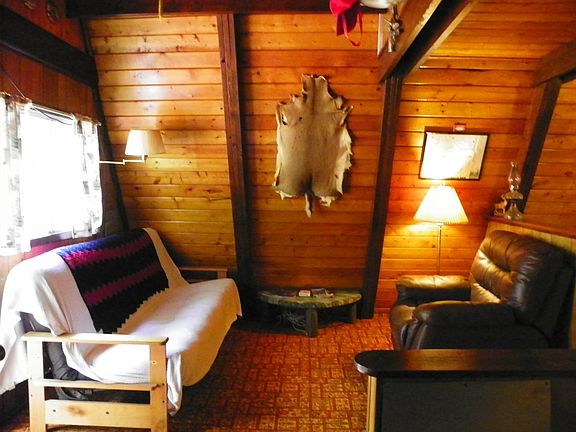 Welcome to this well-maintained cozy A-Frame cottage situated on 1.47 acres. Well and outhouse. There is also a composting toilet and shower. Cottage is heated with a wood burning stove. partially furnished. 2 sheds for storage and a nice deck to enjoy nature. Schedule your appointment today. Cash only as it is on piers and has no septic system.