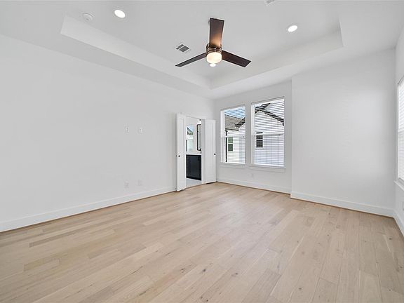Immaculate New 2025 Townhome Never rented before, in a gated community. Kitchen offers an oversized island, sleek SS appliances, The chef-inspired kitchen includes matte hardware, Iron Ore custom-painted cabinets, faux marble quartz countertops and a central island. The home features elegant stone-tiled floors, soaring ceilings, and an open-concept living area with engineered wood floors and custom millwork. A private ensuite bedroom on the first floor provides guest comfort. The third-floor primary suite boasts tray ceilings, a spa-like ensuite with a soaking tub and frameless shower, and custom walk-in closets. Washer, dryer, refrigerator all SS and water softener / Reverse Osmosis all included. Covered balcony, 2-car attached garage, Steps from top eateries, cultural destinations, and St. Pius X High School, Minutes from Downtown, The Galleria, and the Medical Center, Donovan Park offers unmatched convenience for modern Houston living.