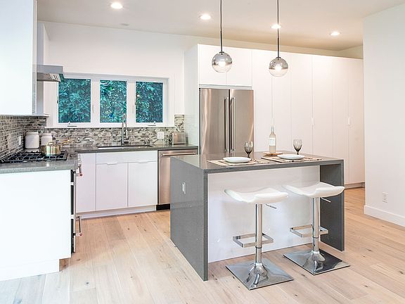 Discover boutique high-end living in this meticulously crafted 2-bed, 2-bath residence within an exclusive eight-unit luxury building, fully renovated in 2020. Positioned above grade on the first floor with tall ceilings for an airy, open feel. Chef's Kitchen Glass tile backsplash, KitchenAid stainless steel appliances (refrigerator, a GAS oven/stove with hood, dishwasher), quartz countertops, and a waterfall island/bar that flows into a spacious great room with pendant and recessed lighting. Spacious Great Room Open to the kitchen and dining area, with flexible furniture layout options. Sliding glass doors lead to two separate decks for indoor-outdoor living. Primary Suite Retreat Generously sized to fit a king bed with side tables, plus room for a small sofa and armoire. Includes a custom walk-in closet and a spa-style en suite bath. Second Bedroom Generous size bedroom with a custom built-in closet and easy access to the second full bath. Premium Finishes Hardwood floors throughout, tiled bathrooms, dimmable recessed lighting through out, blackout blinds in bedrooms, central A/C & heat, a large in-suite washer/dryer, coat closet, and hallway cabinets for linens or general storage. Private Outdoor Living 2 private outdoor areas: A balcony off of the dining room accessed from sliding doors overlooking tree lined Orlando and a private deck off the living room accessed by sliding doors. Modern Comfort & Smart Tech Nest thermostat, digital locks, Ring doorbell, controlled access entrance with a video intercom, in-unit alarm system, and remote control for building entry, garage access, lighting, and your own front door lock/unlock directly from your phone. Amenities In the back of the building there is a BBQ area, dog grooming station, fire pit, and a bamboo-lined outdoor lounge perfect for entertaining. Fitness center with Peloton, elliptical, and light weights. Security cameras throughout the property. Parking: Two assigned parking spaces available in gated parking area below building. EV charger may be available. Unbeatable Location Just 50 meters from Melrose Place steps from trendy cafes, juice bars, restaurants, yoga studios, gyms, and the local farmers market. Face rent will be $5400. Will give 1 month free rent making the effective rent for the 1st year approximately $4,950. Landlord pays for water, trash, landscaping. Minimum 1 year lease .