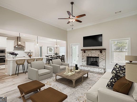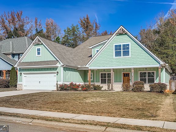 Craftsman charm at its finest! Upon entry you are greeted with an expansive open floorplan with views of your dining area, fireside living room and bright eat in kitchen with an oversized island. Your primary suite is on the main level, highlighted by a luxurious spa bathroom and a spacious walk-in closet. Upstairs, you'll find a finished flex room, providing versatile space for your all your needs to make this house a home, and one additional bedroom and full bathroom. The exterior includes a fully sodded yard, an irrigation system, elegant cedar columns on the spacious front porch, and a covered back patio, perfect for outdoor relaxation. Located in a quaint, sidewalk lined neighborhood with access to walking trails and community amenities, you will fully appreciate this suburban lifestyle - while still enjoying the easy access to shopping and dining. WELCOME HOME!
