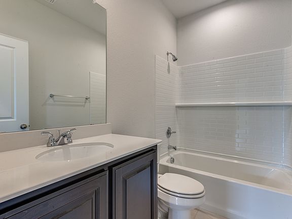 Welcome to your like new rental home in Aubrey Creek Estates! This stunning 3-bedroom, 2-bathroom home features modern design & finish outs. As you enter the home, you'll notice the beautiful ceramic wood look tile that flows seamlessly throughout the open concept living areas. The spacious living room is perfect for entertaining & relaxation. The adjacent kitchen boasts sleek countertops, stainless steel appliances, & ample storage space. All three bedrooms have carpet, providing a cozy and comfortable atmosphere. The primary suite features a stand-up shower & spacious walk-in closet. The home also comes with a new refrigerator, washer and dryer. Blinds will be installed throughout the home. The attached 2-car garage provides additional storage space and easy access to your vehicles. Located less than a mile from HL Elementary & minutes from the plethora of restaurants & retail along 380.