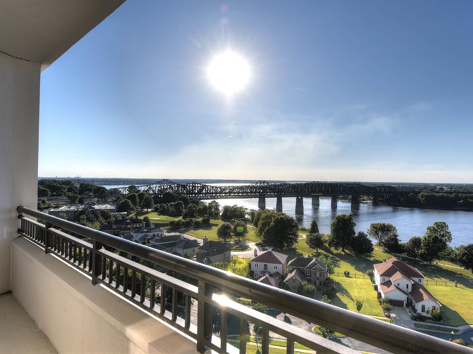 Fantastic 12th floor condo in the Artesian! This condo has 10' ceilings, 8' doors, an exterior porch with Mississippi River and Harahan Bridge views, 1Bedroom / 2 Bathroom + an office. The kitchen has gas cooking and stainless appliances, and all appliances are included with the purchase. It also comes with 2 reserved parking spaces in the garage, #218 & 219. Common area EV charger in parking space 321 in garage. The Artesian has it all, too - 24 hour security, dog park, lighted tennis/pickleball court, indoor pool and hot tub, outdoor pool, and a beautiful rooftop deck with gas grills, and sweeping river views.
