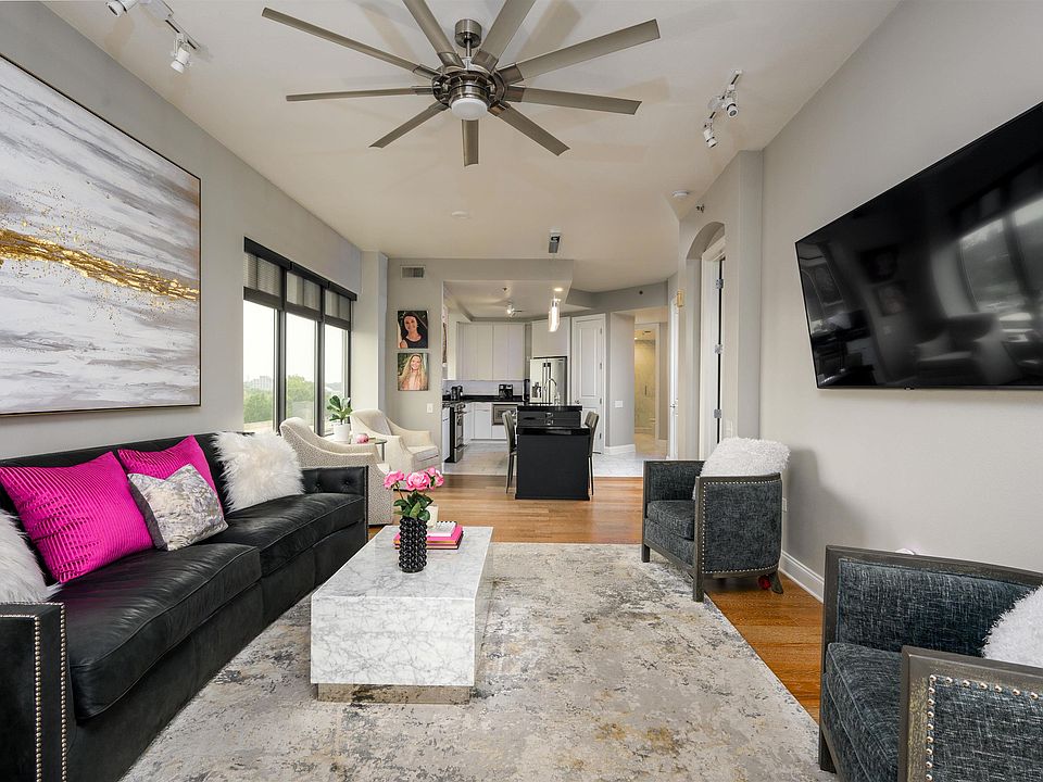 Outstanding 2 Bedroom/2 Bathroom condo with stunning Mississippi River views to the west from your private balcony. Fantastic floorplan with 1- foot ceiling. Kitchen opening to the Dining area and Living Room. Large Primary suite with 2 walk-in closets and luxury Bathroom, with double vanity sinks, large soaking tub, spacious walk-in shower and shelving tower for linens. Refrigerator, washer and dryer included. The Artesian has an indoor pool, outdoor pool, gym, dog park, bike storage, and 24 hour front desk. Common area EV charger in parking space 321 in garage. No short-term rentals allowed.