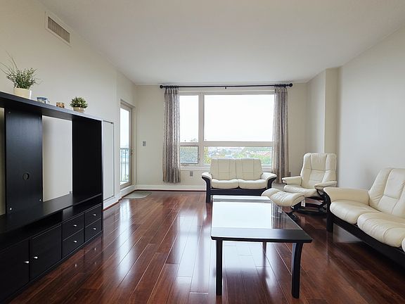 Step into a bright, open-concept living space featuring new hardwood flooring, sleek finishes, and oversized windows that flood the unit with natural light. The updated kitchen boasts stainless steel appliances, stone countertops, and ample cabinet space ideal for cooking and entertaining.