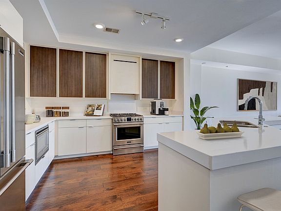Outdoor poolGas cookingGym with yoga roomStainless appliancesEngineered wood floorsWhite quartz countertopsRooftop deck