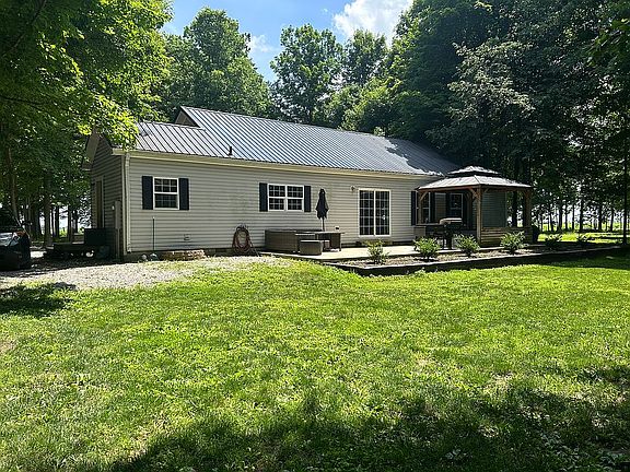 Enjoy the view of the woods from the concrete patio complete with gazebo.