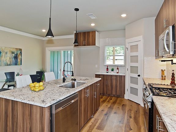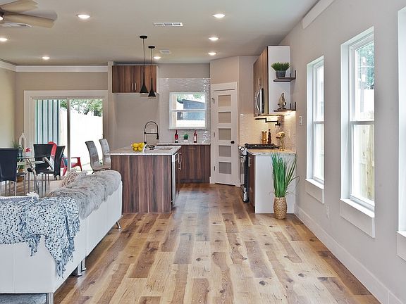 Electric fireplaceBeautiful modern bathroomsWood fencePrivate backyardOpen floorplanCarpet in bedroomsCustom windows