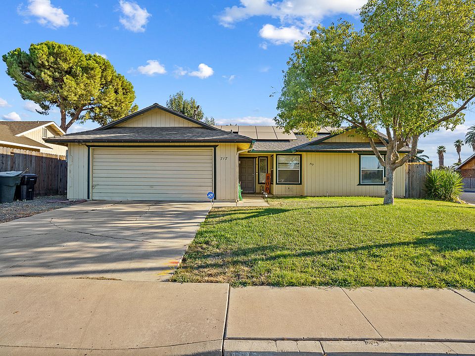 Welcome to this charming 3-bed, 2-bath corner home — a great fit for first-time buyers or a small family. The split-wing layout gives everyone their own space, while the open living areas keep things connected. The kitchen offers both a breakfast bar and a cozy nook that separates it from the living room, making it easy to cook, gather, and enjoy meals together. Two guest bedrooms and a full bath sit on one side of the home, while the primary suite is tucked away with his and her closets and its own private bath. Outside, a long backyard with a covered patio is ready for evening barbecues or weekend hangouts. An added benefit to the home is the solar panels. Families will love the quick drives to Los Robles Elementary, Bartlett Middle, and Granite Hills High, while nearby shopping, dining, and services make everyday errands simple and convenient.