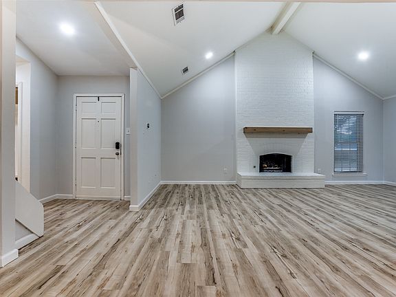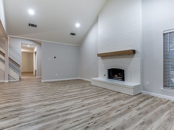 Welcome to this beautifully updated, move-in-ready home that perfectly blends modern design with comfortable living. The heart of the home features an open-concept layout that seamlessly connects the kitchen, dining, and family room, creating a natural flow that’s both functional and inviting. The main living room features vaulted ceilings and a stunning white brick fireplace, a perfect focal point for gatherings and everyday living. The well-appointed eat-in kitchen offers ample storage and counter space, featuring SS appliances, granite countertops, subway tile backsplash, open shelving, and a separate wall of accent cabinetry that provides additional storage and a dedicated coffee bar area. The dining area flows seamlessly from the kitchen and overlooks the backyard through large sliding doors, perfect for everyday meals or entertaining guests.