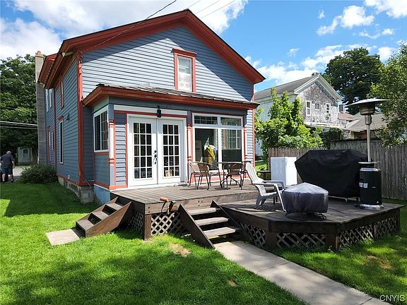CLASSIC PICTURESQUE VICTORIAN COLONIAL LOVINGLY RESTORED W/CHARMING DETAILS & MODERN AMENTIES. LOCATED IN THE QUAINT VILLAGE OF DERUYTER. FULL WRAPAROUNG PORCH W/NEW FLOORBOARDS, STEPS & RAILINGS. 2550 SQUARE FEET(MEASURED BY SELLER) W/4 BEDROOMS, 2 FULL UPDATED BATHS, OAK HARWOOD FLOORS THROUGHOUT & RICH NATURAL STAINED WOODWORK. BE IMPRESSED AS YOU WALK INTO THE FOYER W/RICH-STAINED WOOD WAINSCOATING STAIRWELL & STAINED HARDWOOD STAIR TREADS. GOURMET UPDATED KITCHEN W/QUALITY CABINETS, ISLAND, QUARTS COUNTERTOPS, DOUBLE OVEN W/5 GAS BURNERS, COMMERCIAL STYLE RANGE HOOD, ELECTROLUX REFRIGERATOR, DESHWASHER & PERIOD LIGHTING. KITCHEN OPENS TO LARGE FORMAL DINING RM ADJACENT TO THE FAMILY RM. LIVING RM(PARLOR) FEATURES A BAY WINDOW W/STAIND GLASS & WOOD BURNING STOVE. 4 BEDROOMS W/2 GOOD SIZE PRIMARY BEDROOMS. 2ND SEPARATE STAIRCASE IN BACK TO 2 OF THE BEDROOMS WHICH COULD BE UTILIZED AS AN IN-LAW SPACE. ATRIUM SWING DOOR FROM KITCHEN TO TWO TIER DECK OVERLOOKING DEEP BACK YARD. TWO STORY 28' X 39' BARN W/2 STORY LOFT, WORKSHOP & CAR SPACE. SEPTIC UPDATED-2004. METAL ROOF. NEW BOILER-2019, ADDITIONAL SQ FOOTAGE ABOVE REALIST IS FROM SELLER'S PLANS