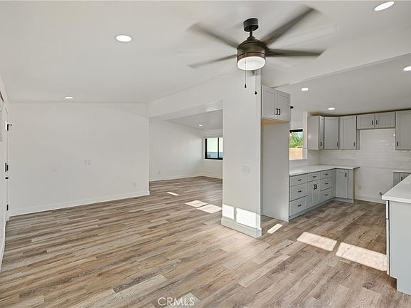 Welcome to Gateway Estates—NO HOA, a rarity in nearby communities—where this corner-lot renovation takes in the San Jacinto backdrop and leans into easy desert living. Inside, black-frame dual-pane vinyl windows and recessed LED lighting keep the spaces bright and calm. The kitchen layers shaker cabinetry, quartz slab counters, and subway tile, with a long serving bar that opens to the living area for effortless gatherings. Two refreshed baths showcase large-format tile and clean, modern fixtures; durable LVP ties the rooms together with a cohesive look.