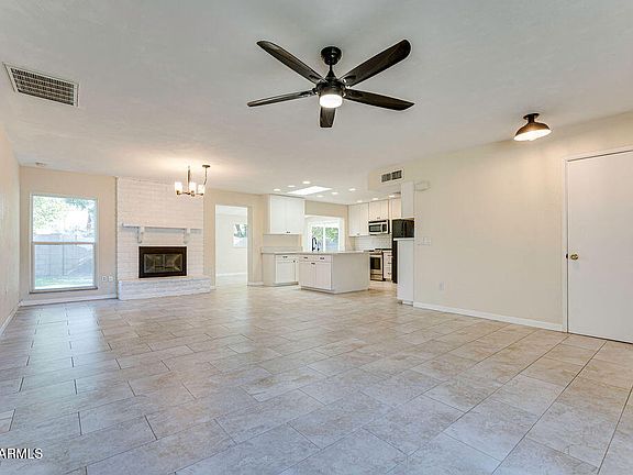 Fully remodeled in 2020, the interior features sleek white cabinets, quartz countertops, contemporary staggered tile flooring, and a warm, inviting atmosphere that instantly feels like home. Roof replaced in 2020, AC replaced in 2022, and a tankless water heater provide peace of mind and energy efficiency.