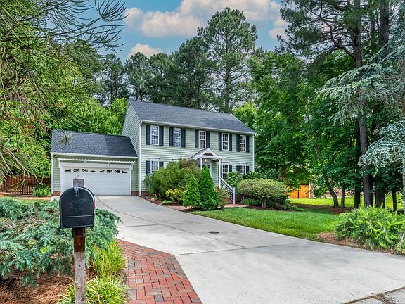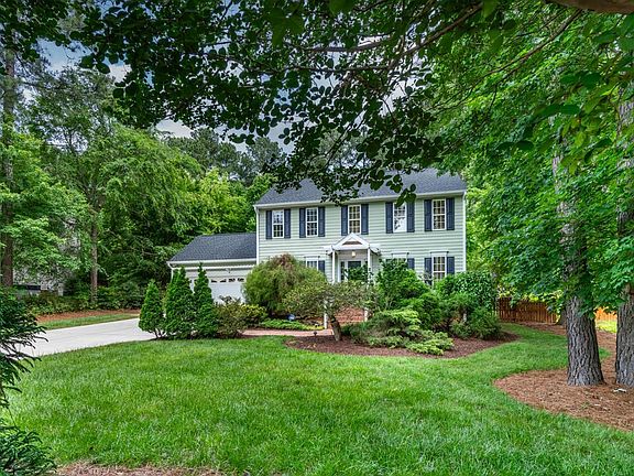 Paradise found... and in time to enjoy your summer vacation plans before school starts in the fall! South Durham outdoor living boasts professional landscaping of unique plantings within a large and wooded, fenced-in, serene backyard, fit with a goldfish pond, generous deck, hot tub and spacious screened porch, framing the traditional 2-story home. Inside you will find hardwood flooring and LVT downstairs; carpet upstairs. Stainless steel appliances, including a 5-burner gas stove. The downstairs study (playroom) has ample storage with custom built-in shelving and a charming glassed-paned double door entry. Separate formal dining room. Open concept living space features a cozy gas fireplace. Blinds throughout. Upstairs washer and dryer, centrally located between the bedrooms, convey. Spacious primary suite has double walk-in closets. Pet egresses off breakfast area as well as in garage. Attached 20'x20' 2-car garage. Stunning, large, wired work shed fulfills all of your storage needs. Roof replaced in 2023; HVAC and water heater in 2021. Fiber cement siding. Walking distance to Pineywood Park replete with pickleball courts, dog park and playground. Either AT&T or Google Fiber available. No HOA neighborhood is easy access to downtown Durham, RTP, I-40, UNC-CH, Duke, NCCU and RDU airport. Exhale. You have found your home.