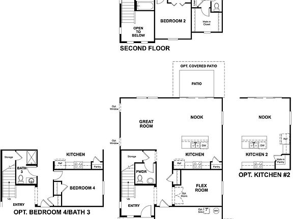 The Hawthorn plan offers ample personalization options to make it your own. Off the foyer, you will find a bedroom and nearby full bath. Additional main-floor highlights include an open kitchen with a breakfast-bar island, overlooking a comfortable great room and a charming dining nook. From the dining nook, center-meet sliding doors provide access to a covered patio. Upstairs, find three bedrooms including a spacious owner's suite—boasting a roomy walk-in closet and attached bath with double vanity sinks.