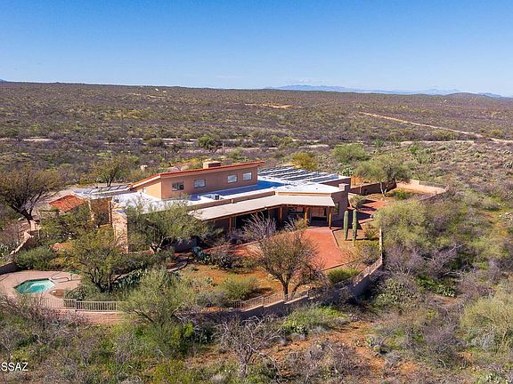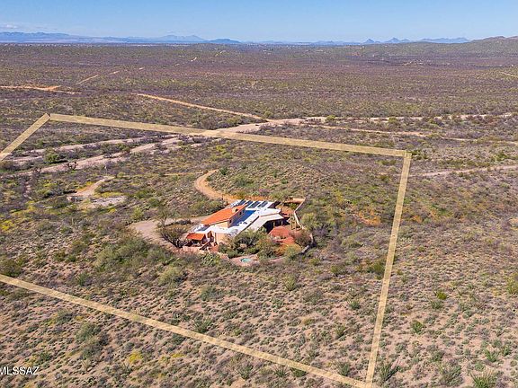 This home is absolutely Arizona! Welcome home to your own 36 acres of pristine natural desert that surrounds a beautiful 4381 sq ft, 5 bedroom, 3 bath, 2 car garage ranch house. Entry is graced by double wood doors & rock fireplace that can be seen from every living area of the home. Wood beams are from local Mount Lemmon. Stain glass window accents throughout. 985 bottle walk in wine cellar with glass walls. Gourmet kitchen w/ granite, stainless steel appliances, & beehive fireplace in breakfast nook area. Guest rooms have their own unique features including sauna, private entry door, private patio and secret loft! Master suite has large bedroom, walk in closet, atrium sun room, & master bathroom w/ walk-in shower & jacuzzi tub. Walled back yard with spa & endless mountain views! Home includes well, owned solar, & two driveway gates. Gated community made up of 57 lots w/min lot split of 36 acres. 35 minutes from downtown Tucson. Located in Vail School District, and 15 minutes from shopping, doctors offices & more. This is the home buyers dream of! Come see it while it lasts!