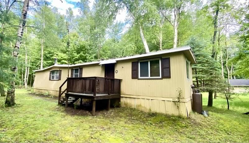 Rustic Retreat on 4 Wooded Acres - Escape to your own peaceful haven with this 2-bedroom mobile home nestled on 4 beautifully wooded acres. Perfect as a weekend getaway, this property offers tranquility and space to breathe. The home features an updated bathroom, laminate flooring and a spacious deck Detached garage provides storage or workspace Enjoy the serenity of nature. Whether you're looking for a rustic retreat or a private homestead, this property is ready for you to make it your own.