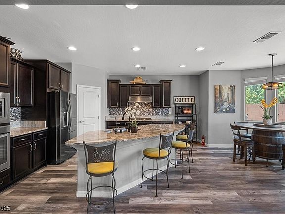 This beautiful home has four roomy bedrooms and a downstairs flex-space that can double as a potential bedroom. This home has so much space, theres also a 16 x 21’ loft, you can transform it to anything your heart desires! The spacious kitchen is gorgeous with high end stainless steel appliances and a gorgeous custom backsplash that will have you wanting to cook and entertain! It has an open living area with large sliders and sitting room with an additional flex space or office on the main floor. The upstairs primary bedroom and bathroom is complete with a stunning chandelier and spacious walk in closet making this room a retreat! Surrounded by beautiful mountain views, a tandem three car garage with storage and a pool sized lot, this property offers endless possibilities! The location and design of this home will not disappoint! It’s a must see property in a great location. Minutes from new shopping and dining. Easy commute to the airport, Henderson and Summerlin.