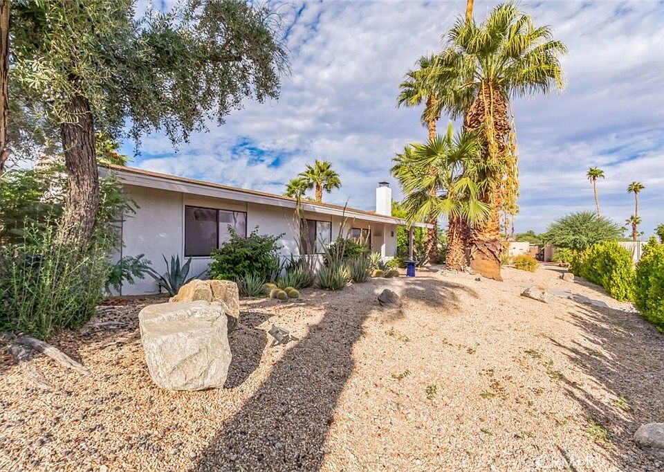 Experience the ultimate desert lifestyle at 71729 San Gorgonio Road in sunny Rancho Mirage! This exceptional 3-bedroom, 1.75-bathroom home comes complete with an attached 2-car garage and offers a spacious 1,714 square feet of living space on a generous 8,276 square foot corner lot in Magnesia Falls Cove/Rancho Mirage. As you enter, you'll be captivated by the open floor plan, beautiful hardwood floors, and the warm glow of recessed lighting throughout. The living room is inviting and well-lit, featuring a cozy fireplace for those chilly winter evenings. Adjacent to the living room, you'll find the dining area and a chef's dream kitchen equipped with modern appliances, ample storage, and a convenient breakfast bar. With 3 spacious bedrooms, each with its closet, and 2 well-appointed bathrooms – one with a shower in the tub and the other with a stylish standing glass shower – this home offers comfort and convenience. Head outside, and you'll discover your very own private oasis. Enjoy a secluded patio, a sparkling pool, and a spa, all perfect for outdoor entertaining and relaxation. The kitchen and the bathrooms are remodeled. This home features wood flooring, quartz counter tops, open floor plan, newer appliances, garage with custom cabinets and epoxy floor, large bedrooms, large pool with jacuzzi and more. Centrally situated in a highly sought-after neighborhood, this delightful residence is just moments away from shopping, dining, and entertainment. Embrace the desert lifestyle you've always dreamed of and make this your new home today!