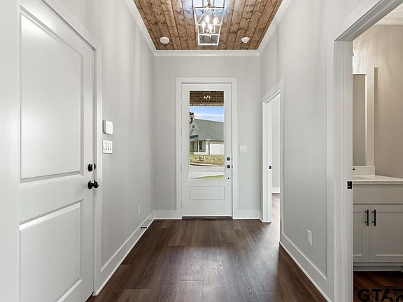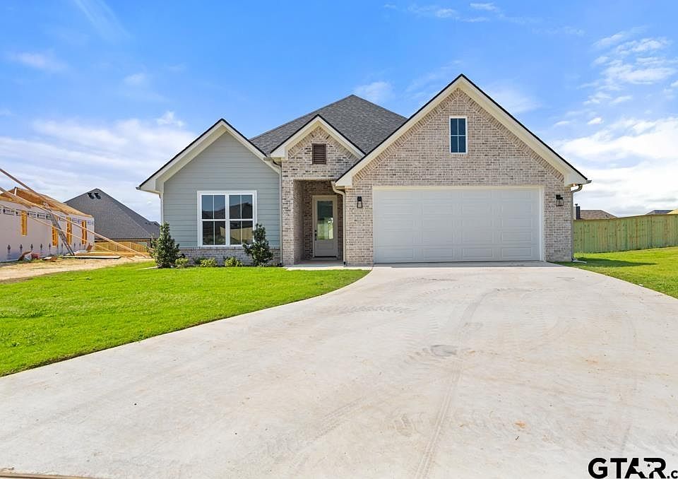Welcome to one of the crown jewels of Guinn Estates—a designed home plan used for the 2025 Tyler Area Builders Association Parade of Homes, proudly built by Monarch Homes. Perfectly positioned on one of the largest lots in the neighborhood, this standout property is located in the award-winning Whitehouse ISD. With 2,020 sqft of thoughtfully designed space, this 4-bedroom, 2.5-bath home combines high-end luxury with energy-efficient living. The custom-designed open floor plan features a vaulted master suite, double shower heads in the custom tile master shower, and a walk-in closet with direct laundry room access—an ideal blend of function and sophistication. The kitchen is a true showstopper, boasting quartz countertops, gas appliances, custom cabinetry, and handcrafted trim work throughout. Designer lighting, a gas fireplace, and luxurious finishes elevate every inch of this home. Enjoy the outdoors from the covered front and back porches, and rest easy with features like a tankless hot water heater, energy-efficient design, and a 1-2-10 Builder's Warranty for added peace of mind. Every detail of this home has been meticulously curated to deliver a custom feel without the custom price tag. In Guinn Estates residents enjoy not only beautifully built homes—but also access to a community pool and a true neighborhood atmosphere. Schedule your private tour today and experience the unmatched style and comfort of 7173 Alexander—where custom meets everyday livability.