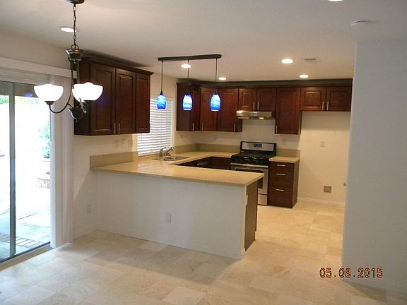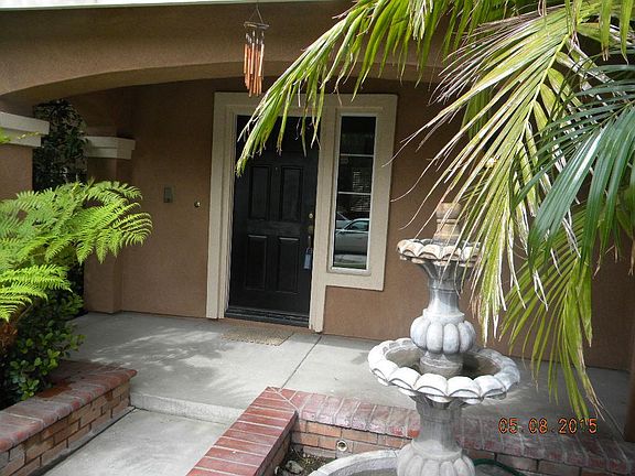 This gorgeous home is perfect for the entertaining family. This home features a gorgeous landscaped front yard into an entry way where you are greeted with an open floor plan. The home includes both tile and carpeted flooring. The kitchen is stunning, with cherry wood cabinets, granite counter tops and tiled flooring. Along with the upgraded appliances in stainless steel, this kitchen is the jewel of the home. This home also includes 3 large bedrooms with walk in closets, and 2.5 bathrooms. Up the stairs there is also a loft which could be used as a home office or gaming center. Stepping out into the backyard you have a tropical setting with multiple palm trees, a cemented patio, built in fire place with seating and a pool. This home will not last!