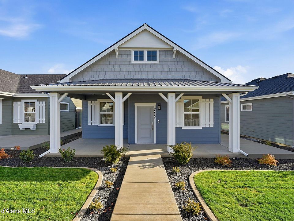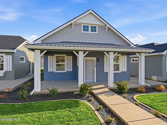 **SPECIAL BUILDER SALES/FINANCING PROMOTION ON THIS MOVE-IN READY HOME!** The Seaside is a single-level cottage style home with 1,366 square feet, 2 bedrooms (+ DEN), 2 bathrooms and a 2 car garage. The Seaside's covered front patio opens to an inviting great room, a large kitchen with pantry and island, and a functional secondary room that is perfect for an office or den. The laundry room, conveniently located off the garage, doubles as a mud room. The master suite, which is adjacent to the secondary bedroom, features a large walk-in closet. Designed for a carefree lifestyle, these low maintenance homes include lawn care and partial snow removal, main floor living, and distinctive features throughout the home. Coeur d' Alene Place offers a proud tradition of neighborhood integrity, featuring thousands of trees, acres of parks and miles of walkways connecting you to the Kroc Community Center and downtown Coeur d' Alene. Fireplace is Electric. Solar package included.