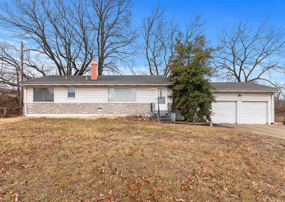 Rare opportunity! Ranch home on nearly 1 acre of land with a 2-story, heated barn perfect for a workshop. Seller is including the riding lawn mower in the sale. This home is a fixer-upper's dream! With some cosmetic updates, this could be a beautiful retreat. Hardwood floors on most of the main level. Brick wood-burning fireplace and big picture window are the centerpiece of the family room. Lots of cabinet and counter space in the kitchen, with a gas cooktop and wall oven. Updated bathroom has lovely tile floors and walls. Cozy sunroom off the kitchen. Tall ceilings in the attached garage provide extra storage or work space. Lower level has a finished room for a private office. Super easy access to I-270, shopping, dining, and conveniences, yet you will feel you are in the middle of the country when you are working in the back yard. Plenty of space to garden and play. Hazelwood (West High) Schools. Don't miss this unique home! See it today!