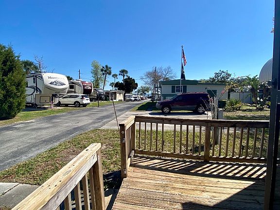 This LEASED LAND home sits in the 55+ adult park of Palm Harbor in Titusville, Fl. Current MONTHLY lot rent is $393 monthly and includes trash/recycle, clubhouse, boat launch and pavilion at water's edge. No rentals permitted, small animals permitted with approval. All new owner's must complete background check with park office. This is a large 3 bedroom 2 bath home, double wide "fixer-upper" unit on a corner lot. * Cash only, not eligible for financing.* Double wide homes are hard to come by in this area ! This unit offers a 10x14 shed, large driveway with carport, 2 side decks including an 11 x 22 (approx) screened porch. The front deck does offer glimpses of the Indian River. ~This unit is a spacious home with lots of potential. It needs some cleaning, painting, flooring update ( no soft spots) and minor plumbing. ~No roof leaks, no ac issues currently but both are approx 17 years old. ~The kitchen was renovated in 2014 and all appliances to remain. Old damage at washer/dryer hookup. ~The exterior was recently pressure washed. The home sits in the 55+ adult park of Palm Harbor in Titusville, Fl. Current lot rent is $393 monthly and includes trash/recycle, clubhouse, boat launch and pavilion at water's edge. All listing information is deemed reliable but not guaranteed and should be independently verified through personal inspection by appropriate professionals. We do not and cannot guarantee or warrant the accuracy of this information or condition of this property. Measurements are approximate. The buyer assumes full responsibility for obtaining all current rates of lot rent, fees, and pass-on costs. Additionally, the buyer is responsible for obtaining all rules, regulations, pet policies, etc., associated with the community, park, or home from the community/park manager. We are not responsible for quoting of said fees or policies. Financing is available through 3rd party lenders.