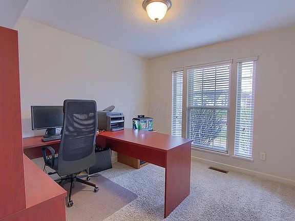 Seller is asking for highest and best by 12 pm noon tomorrow/Monday 4/7. story entry leads you into 2 story great rm w/cozy fireplace. 1st flr Master suite offers large private bath w/his & her sinks, separate garden tub/shower, & walk-in closet. Kitchen is open to great rm w/stainless steel appliances, 42 inch cabinets, ceramic backsplash and spacious eat-in kitchen area. 1st floor den w/double glass doors & laundry. Formal Dining room. Huge bonus room above garage could be used as 4th bdrm or play room. Partial finished area in LL offers lots of space/3rd full bath rough in. Enjoy entertaining on the back patio with treed lot /privacy. 20 to 25 minutes from Downtown Columbus. Close to shopping(Costco, Home Goods, Aldi etc, Walking/Biking Trail: ML ''Red'' Trabue Nature Res