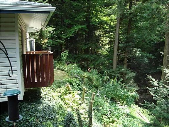 Picture perfect inside & out! Lovely setting with w/gardens & mature trees & stone wall overlooking ravine. House has an excellent floor plan, spacious rooms, large windows, "endless pool" w/private shower off large master bedroom, lower level could be an in-law set-up w/private entrance. House has newer furnace & central air conditioning. Property has two wells. A little piece of paradise right around the corner!