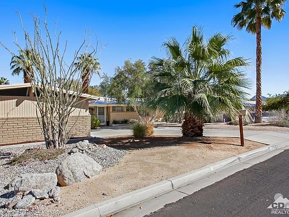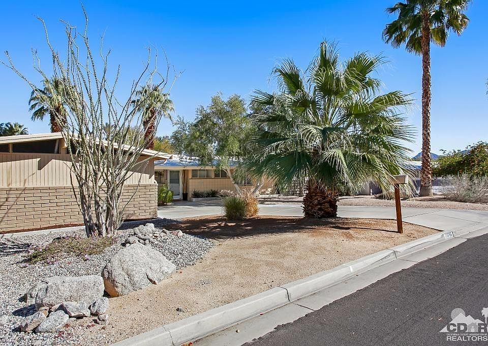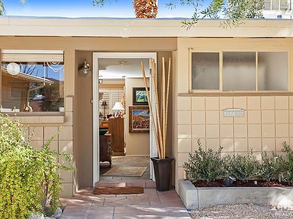 NEWLY LISTED! This Charmingly elegant Mid Century 2 or 3 bedroom/convertable den, has been completely redone, with many upgrades, tasteful designer touches, it also has incredible mountain views, appealing to the most sophisticated buyer. The artist studio, or multi purpose room, adds a surprise element to the home. The Great room and bedrooms boast high beamed ceilings, plantation shutters, also there is a centrally located fireplace, and ample wall space for the art lover. A new A/C, sinks, toilets, refrigerator, granite counters, and stainless accents all add to the recent upgrades. The newly added entertaining terrace off the kitchen and the drought tolerant landscaping lend to the properties ambience. There is an outdoor shower to enjoy for those balmy summer days as well. Also the location is one of the best in the Desert, within walking distance to shopping, restaurants, and theaters. A true Desert Jewel!