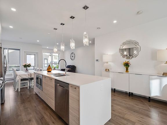 Say hello to your slice of paradise at Aloha Estates! This bright corner unit brings the vibes with 3 bedrooms + a flex, soaring vaulted ceilings, and every upgrade the developer offered. Tucked away from the road for peace and quiet, yet steps to parks, schools, shops, and the future SkyTrain. The open-concept main floor is flooded with light—perfect for cooking, chilling, or entertaining. Downstairs flex space? Use it as a home office, guest room, or creative zone. Built-in speakers, smart security, custom laundry upgrades, and extra garage storage make daily life a breeze. This one checks every box—and then some. With the future SkyTrain nearby, this is your chance to own a peaceful, connected, move-in-ready gem. Come feel the Aloha energy for yourself!