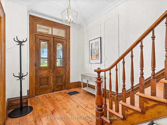 *As featured on HGTV: Step inside the meticulously restored farmhouse by some of the top craftsman in Canada. The windows flood the space with natural light and the gourmet kitchen is an entertainers dream, boasting top of the line appliances and sleek countertops. Entertain guests in your grand dining room that opens up into your formal living room providing a luxurious but comfortable space for your family. Just off the kitchen you have a peaceful summer room with a wood burning stove that walks out to the covered wrap around porch overlooking the pasture fields of the 16 acre Bison farm. There are four spacious bedrooms on the second floor, including the primary retreat with a beautiful ensuite and separate secret staircase, along with second floor laundry for added convenience. Thats not all - there's a delightful one-bedroom apartment or in-law suite attached to the main house, complete with its own single-car garage, offering endless possibilities for guests. Experience the epitome of country living with unparalleled amenities. This Hobby Farm isn't just a property; it's a lifestyle waiting to be embraced. Welcome home to your own slice of paradise! *HGTVs: Scotts Vacation House Rules