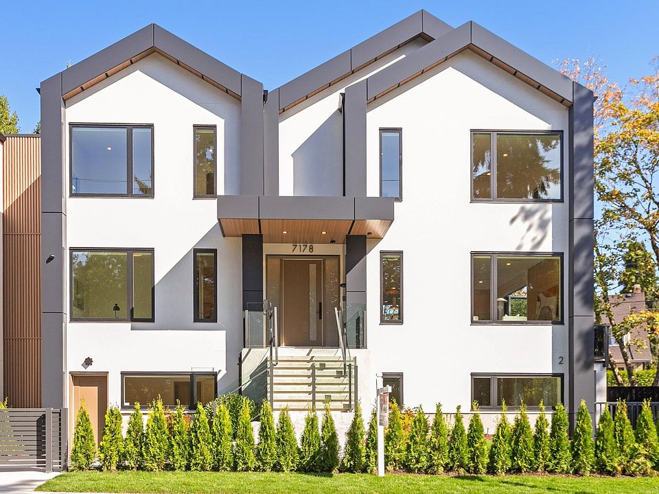 Quiet and modern brand new 1/2 duplex in central location facing Arbutus Greenway. 'ACM' metal facing and metal wood looking soffit. 9' ceiling on each floor including basement. Bright and spacious layout. High quality finishing throughout. Elegantly designed for 75" TV wall wood cabinet in Living Room. Fisher & Paykel kitchen appliances on Main. Wok kitchen. Foldable sliding door to the deck. Flex/bdm w/ensuite and a Den on Main. 2/F all 3 bedrooms ensuited. Basement has 2 bdm legal suite for mortgage helper. A Media Room and a Hobby Room plus full bath. Air-conditioning, HRV, Intercom, Security sys with video camera, sprinkler system, Hidera vacuum sys. Close to 2 levels of schools and all private schools. Priced low for a quick sale. Open House Oct 4/5 Sat/Sun 2-4 pm.