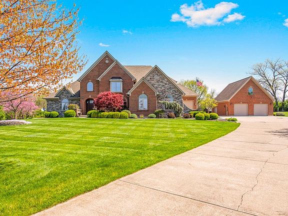 Thoughtfully crafted for those that demand the best; this 5 bedroom, 6 bath (4-2) home features over 6800 Sq Ft of finished living space on over 5 acres of prime real estate. Disappear down a private drive and arrive at a next level living experience. Inside soaring ceilings create a bright & airy ambiance, complemented by warm hickory flooring, coved doorways and high end finishes throughout. Beautifully appointed living areas & kitchen, 1st floor primary suite with walk-in closets for both king & queen and spa inspired bath dripping in luxe finishes. Upstairs, the secondary bedrooms provide comfortable quarters, each with their own walk-in closets. 007 worthy finished LL w/ sleek kitchenette, FP, guest suite w/full bath, and study wrapped in walnut coffered ceilings. Paradise awaits outdoors; with a heated pool, jacuzzi, entertainers cabana w/ kitchen, bathroom, media area, FP, custom landscape & lighting AND a 7 car garage w/ RV plug-in and pickleball court for the win. Lakota LSD!