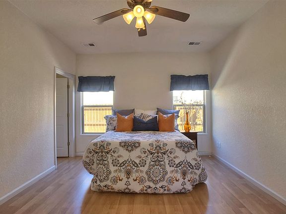This Santa Fe style home is immaculate. With 3 bedrooms and 2 baths, split bedroom floor plan, this is a must see. A gas fireplace and an open concept kitchen/living area is perfect for entertaining. The master is a true retreat, 5 piece bath with an upgraded tile shower and plenty of closet space. The back patio is covered and quiet. Enjoy the no hassle landscaping. Take a walking trail from this neighborhood to Canyon View Park where you will find dog friendly grassy areas, sports fields, tennis courts and much more