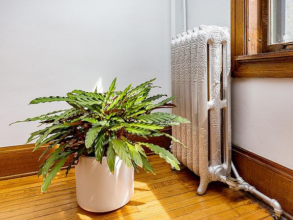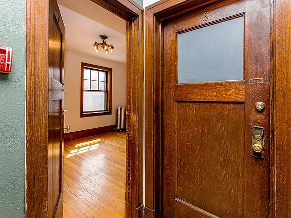 This historic building was fashioned to replicate a building in London that charmed the original builder. The apartment features 9' high ceilings, large windows, foot high natural oak woodwork with oak crown molding in the LR and refinished oak floors. It has a contemporary IKEA kitchen that includes a dishwasher. Lots of storage. The windows have been meticulously restored and include fantastic wooden blinds in BR. Bathroom has been updated and new tile surrounds the tub. Close to restaurants, coffee shops and sculpture park. Heat, water, and garbage are furnished and tenant pays electric. Smoking outside only. There is outdoor space and a community herb garden. This is your opportunity to live in Historic Sherman Hill in an apartment community that is neighborly. Essentially downtown DM living but in a residential setting with mature trees and quiet nights.