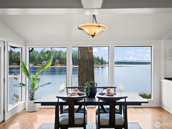A Gentle Life by the Sea! 5 acres with 175 feet of West Facing, No Bank, Sandy-pebble beach, this Case Inlet treasure is an invitation to a slower, richer life. A place where sunsets paint the sky behind the Olympic Mountains & the tide delivers treasures to your feet. The home feels like a beloved heirloom—a timeless blend of rustic cedar with soaring ceilings, creative built-ins, & antique charm. Fireplaces in both the living room & primary warm the home year-round, while the wisteria canopied wrap around deck, gardens & greenhouse, private pond, fabulous beach cabana, & 1500 sf shop expand your world outdoors. Life here is abundantly peaceful, cozy, inspiring, & kissed by salt air—a coastal hideaway in every sense of the word.