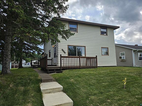 Lots of possibilities with some updates and much further potential. This property has the possibility to go back to a duplex, but is currently a single family residence. Large deck wraps around one corner of the home with forced air. Steel siding on the house, vinyl on the 2-car garage. New lateral pipe is being installed. Come check it out today!