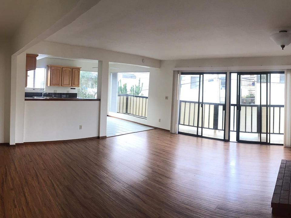 Large 2 Bd 2 Ba located west of PCH. Granite countertops, wood floor. Tiled kitchen flooring.. Balcony. Very large living room. New paint. Peak ocean views and rooftop ocean views. Very neat and clean. Contains laundry hook-ups. Attached garage parking. Available now!