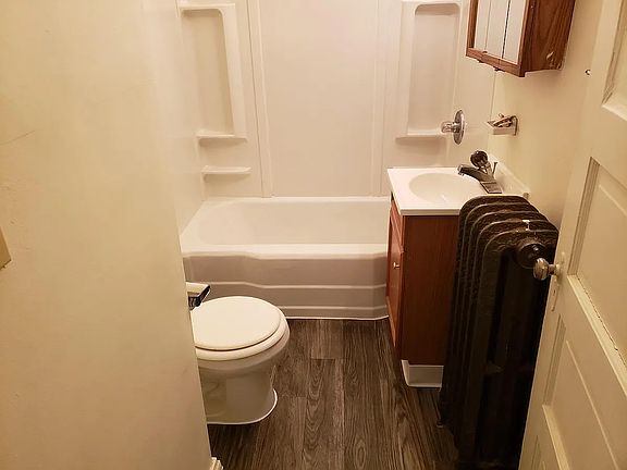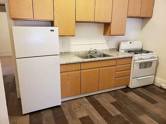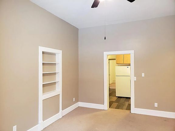 This 1st floor apartment features a huge living room, decorative fireplace, and lots of kitchen cabinets!