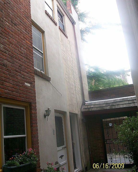 Charming gated courtyard trinity in move-in condition on a lovely, quiet tree-lined street. Two bedrooms, one bath, two fireplaces, hardwood floors and a brand new (2020) private deck. Private, secure entrance leads to a landscaped courtyard. Enter the property directly into a living room with a fireplace, hardwood floors, kitchen (new refrigerator 2020) and rear door to small alley easement way. Lower level: Partial unfinished basement, storage & laundry (washer/dryer 2006). Second floor: full bath & a comfortable front bedroom. Third floor: a nice-sized second bedroom with fireplace, cathedral ceilings, and sliders to a private deck with city views. Original details and updated mechanicals. This house has central air and is within walking distance to supermarkets, parks, restaurants, shopping, nightlife, and The Avenue of The Arts. This location can't be beat.
